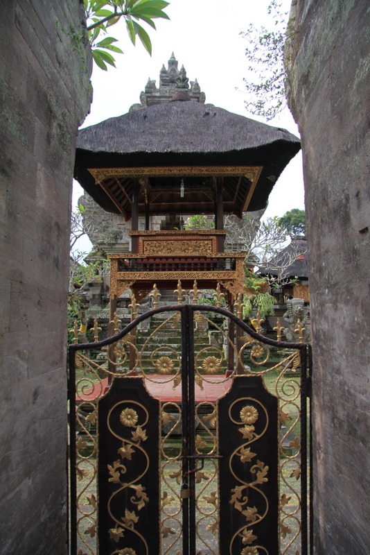 We slenteren Jalan Hanoman, de straat waar ons Resort zich bevindt, uit en komen uit in de hoofdstraat van Udub. Het is een uitdaging om zonder te struikelen te wandelen en de winkeltjes te bekijken, grappig details is dat voor ieder winkeltje een offermandje staat. De hoofdstraat van Ubud is de ‘Jalan Raya Ubud’. Er zijn veel winkels met vooral kunst en kleding. Het valt ons op dat hier, net als in Nusa Dua, alles een prijskaartje heeft naar de ‘Europese maatstaf’. Erg opmerkelijk, we zien leuke souvenirtjes maar kunnen nog niet goed inschatten of de prijzen echt veel te hoog zijn. De toeristische trekpleister is het Puri Saren Agung paleis, waar regelmatig optredens door diverse Balinese dansgroepen worden gegeven. Een deel is toegankelijk, het schijnt nog bewoond te worden. Voortdurend worden we aangesproken of we tickets willen kopen.