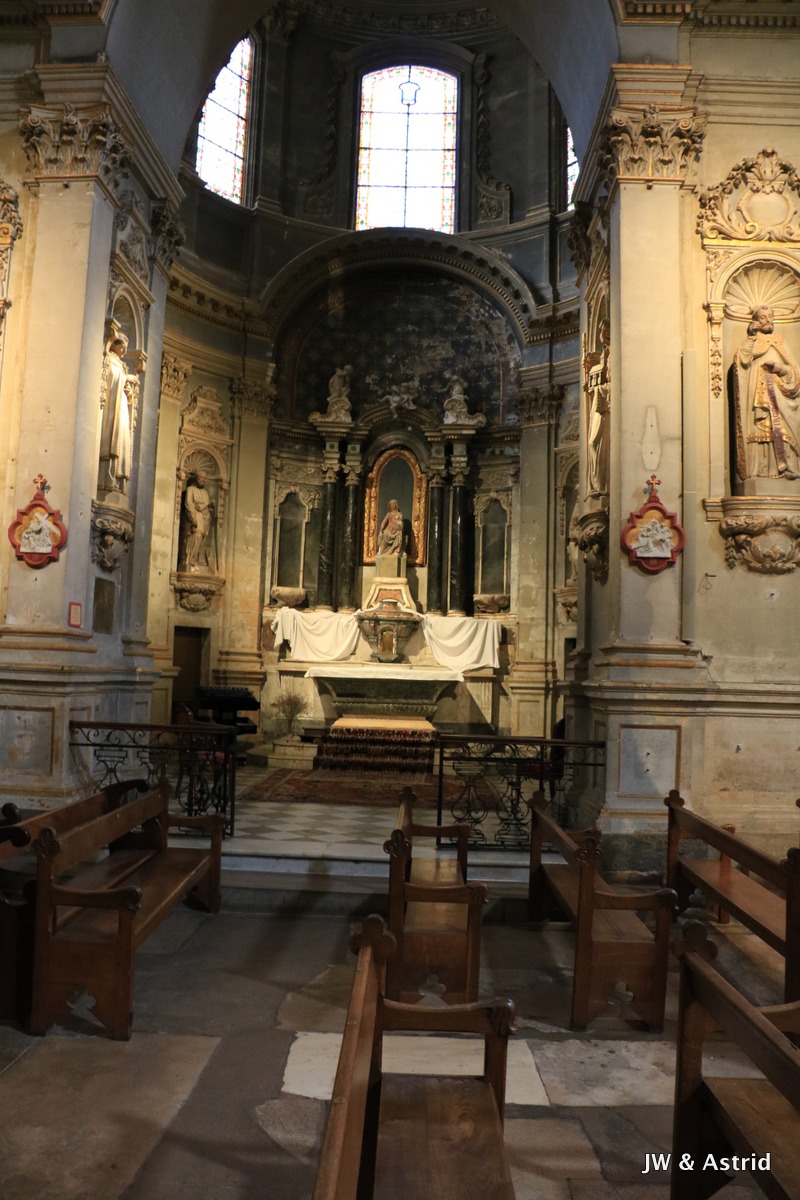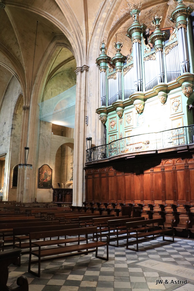 Het mooie oude centrum is levendig en relaxed. Ondanks dat het best druk is voelt het heel ontspannen aan. In de oude binnenstad bevinden zich een groot aantal winkels, talloze restaurants, veel pleintjes en fonteinen. We bewonderen de kathedraal Saint-Saveur, die er van binnen best bijzonder uit ziet.