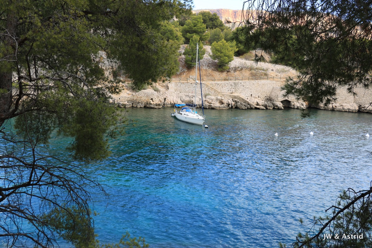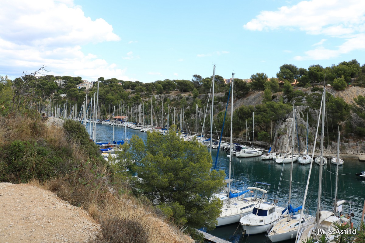 Er is vlakbij Cassis nog een mooie Calangue die we wel willen zien, Point Miou. De wandelroute er naar toe is relatief eenvoudig. We wandelen op ons gemak de Calanque door en genieten van het prachtige uitzicht aan het einde van de Calanque, er liggen allemaal bootjes.