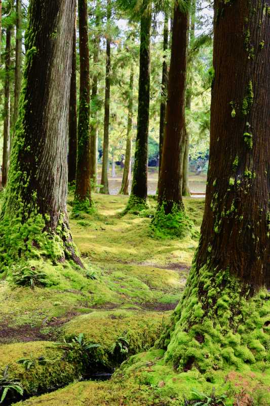 Snel weer op de naar de kust in bet Westen, want hier verwachten we de zon. En dat blijkt onderweg al snel. We stoppen voor een koffietje en genieten van een fraai onderhouden park bij Lagoa das Patas in een bosachtige omgeving.