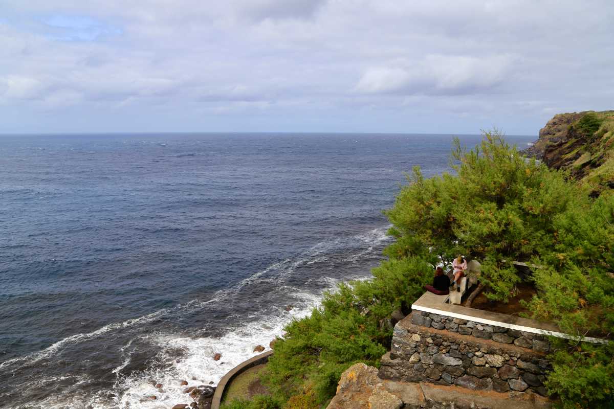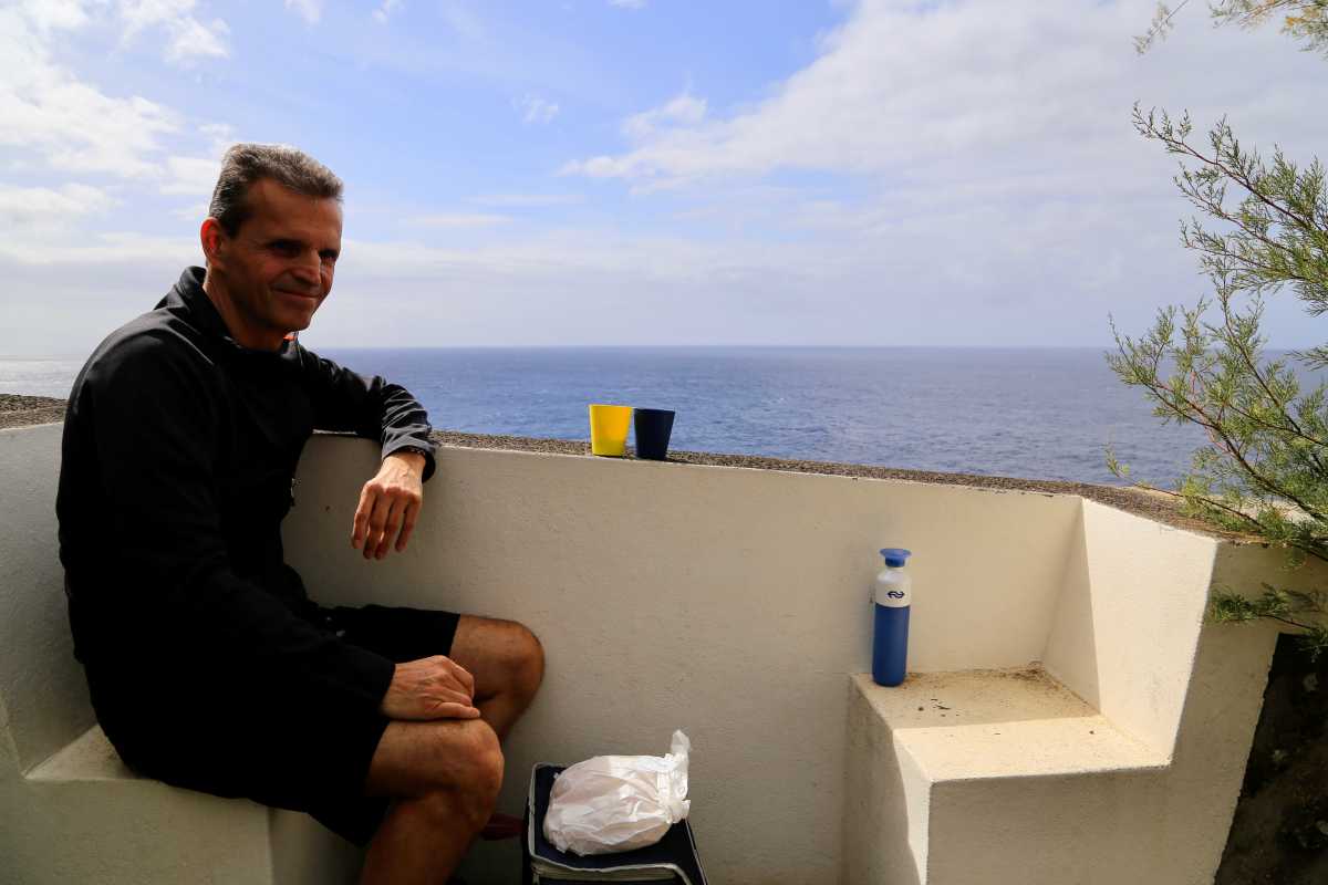 In de buurt van Santa Barbara vinden we een supermarktje met vers brood en nemen dat mee naar een mooi plekje aan de kust waar we lekker relaxed picknicken. Voor het eerst is het ook zo helder dat we zelfs verderop een ander eiland zien liggen, dat moet Sao Jorge zijn.
