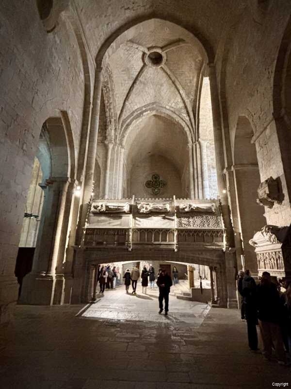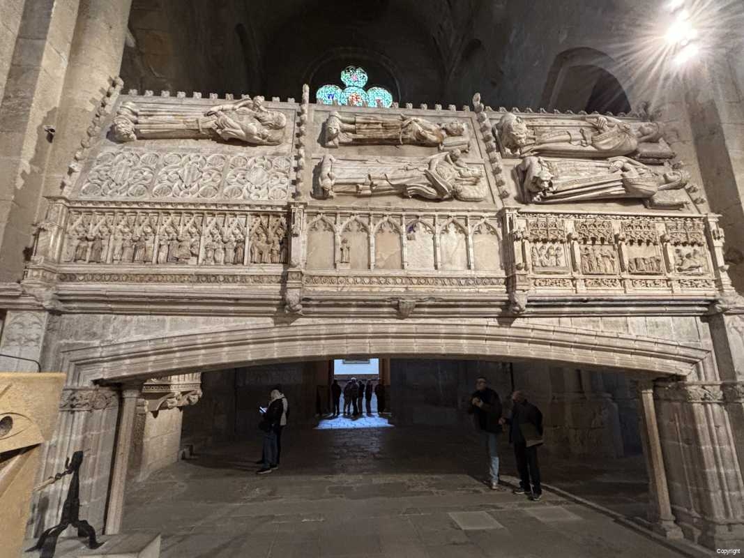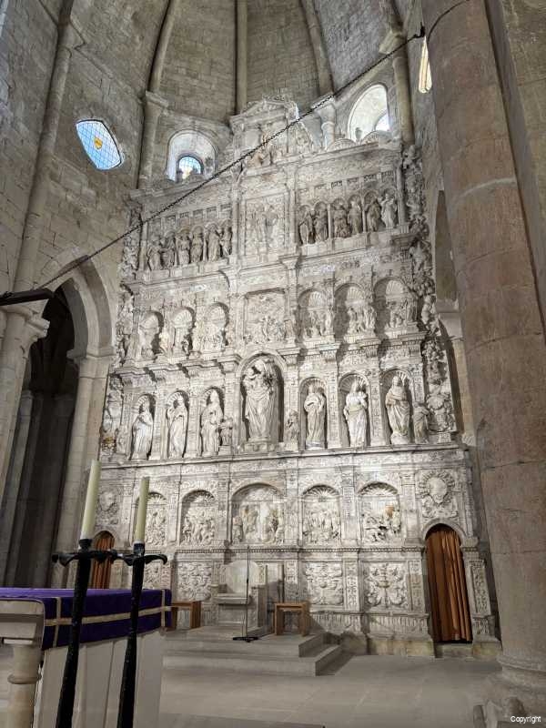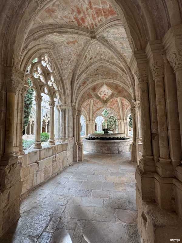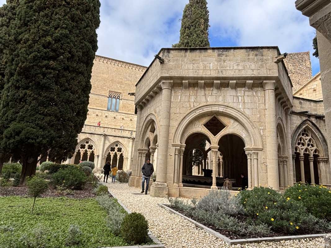 We hebben besloten om vandaag te starten met een bezoek aan het Klooster van Poblet. Toevallig hebben we dit een tijdje geleden gezien bij het programma “Verborgen Verleden” waar actrice Eva Crutzen erachter komt dat ze afstamt van een koning van Aragon en die ligt hier begraven. Wij rijden in 45 minuten naar het klooster en kijken vol bewondering rond, met name naar de prachtig uitgevoerde graven en het enorme altaar in de kerk. Echt onvoorstelbaar hoe beeldhouwers dit zo gedetailleerd hebben kunnen maken, erg fraai. Verder is de kerk eigenlijk heel sober, geen goud, weinig hout, geen schilderijen of andere versieringen. Maar wellicht komt dat ook door de tand des tijds. Blijkbaar heeft het complex de afgelopen eeuwen diverse functies gehad en is het klooster ook een tijd verlaten geweest en geplunderd. Pas vanaf 1940 wonen er weer monniken.