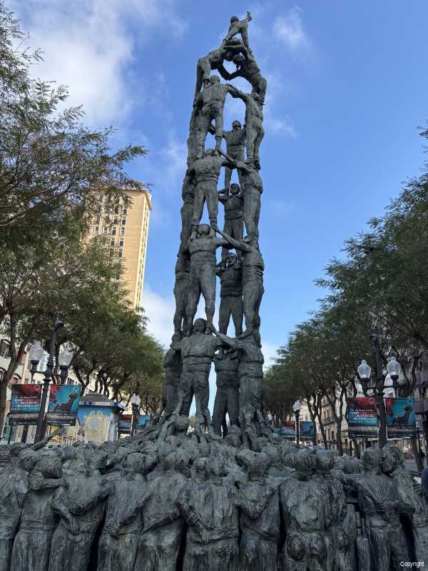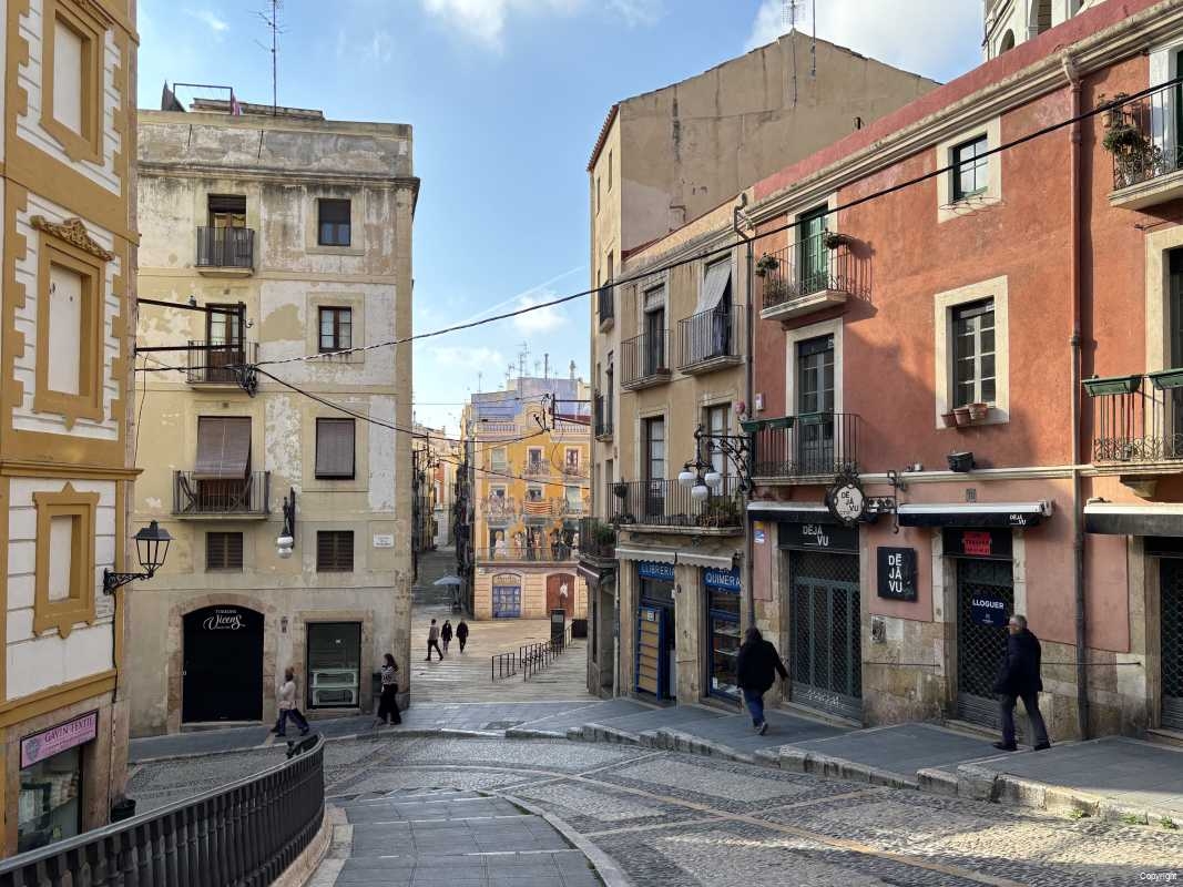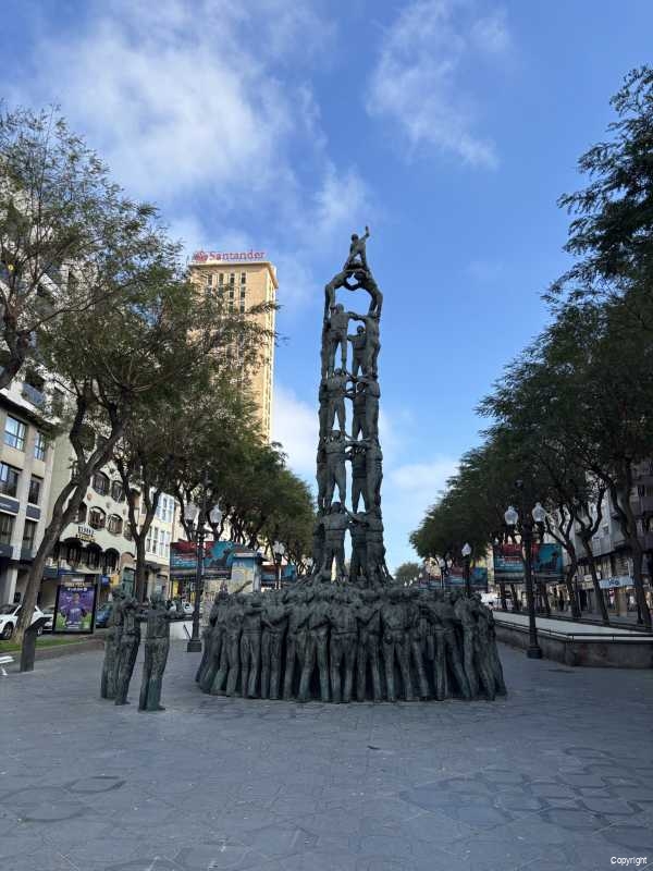 Vanaf ons appartement bij de haven pakken we even de auto om naar het centrum te gaan. Hier wandelen we over de plaatselijke Rambla waar een standbeeld staat voor de in deze regio bekende menselijke torens. Onderweg komen we de markt tegen. We lopen even binnen en we zien een barretje waar ze sushi (typisch Spaans natuurlijk) verkopen en daar hebben wij wel zin in. We vervolgen onze wandeling naar het Mediterraan Balkon voor het uitzicht en naar de Kathedraal. Zo sukkelen we een beetje door het oude centrum dat er leuk uitziet, maar waar het (nog) enigszins rustig en stil is.