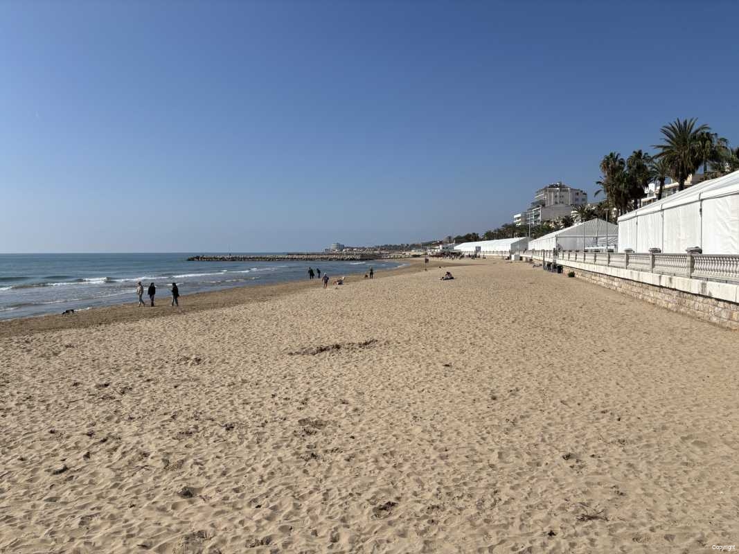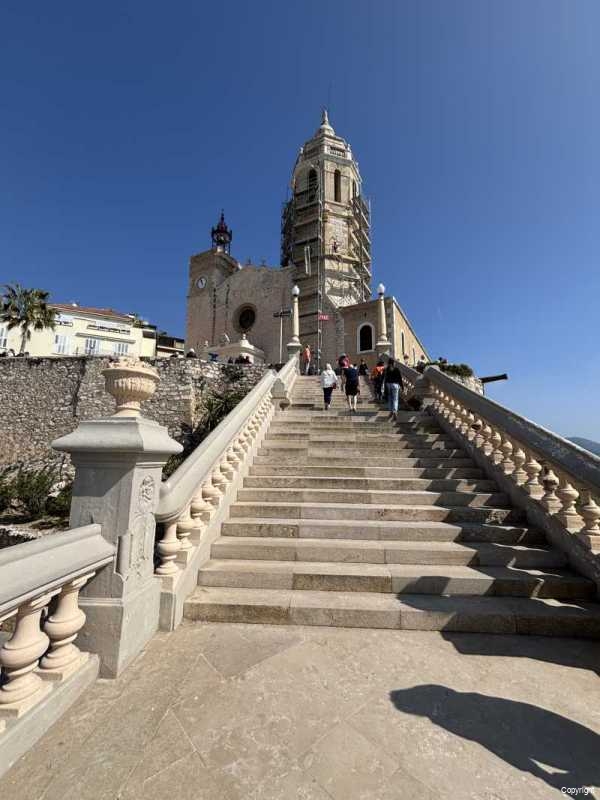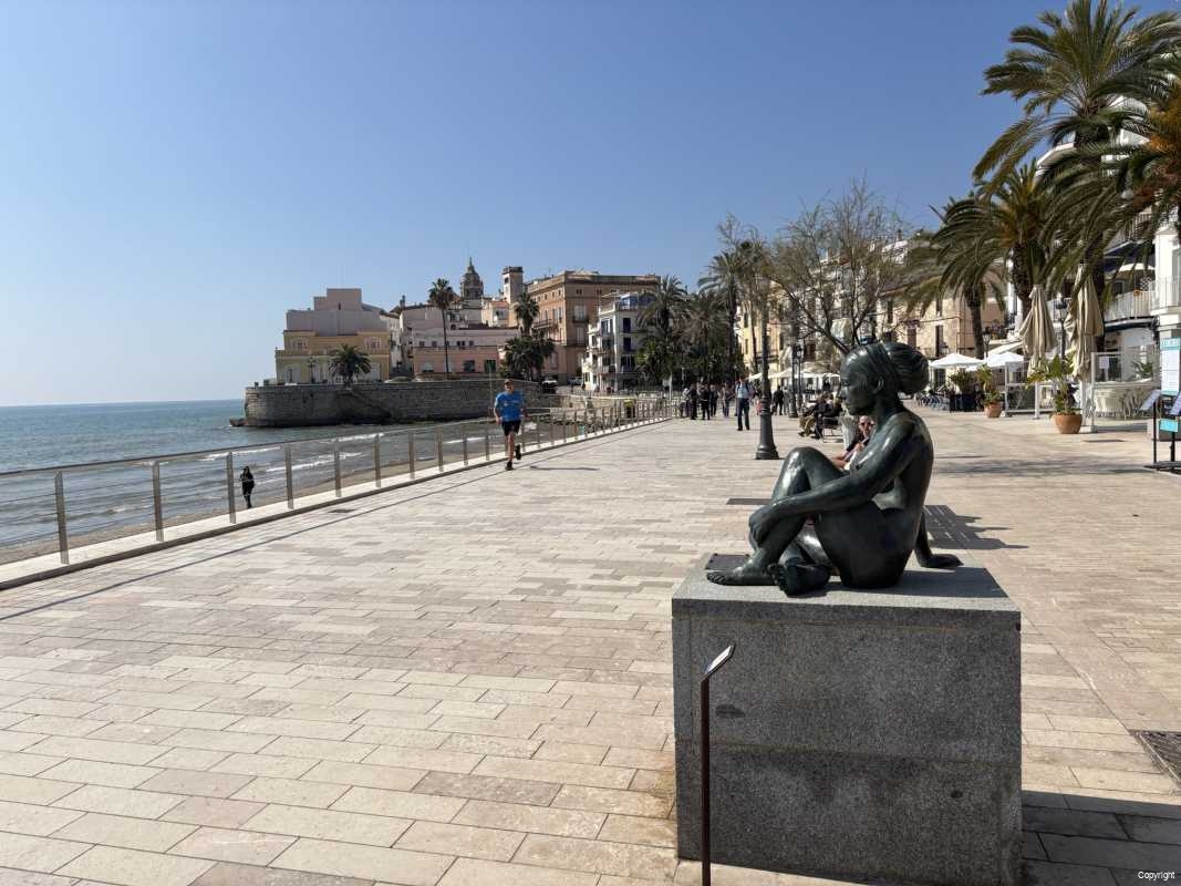 Wij gaan een stukje naar het zuiden, naar Tarragona aan de Costa Daurada. Onderweg komen we eerst langs Sitges en daar stoppen we voor een kort bezoek. Sitges is een bekend badplaatsje, met een mooi strand, een boulevard, een paar winkeltjes, een kerk en terrasjes. Wij wandelen een stukje om de benen even te strekken en genieten van het heerlijke weer met een koffietje op een terras.