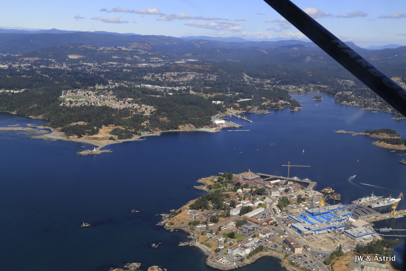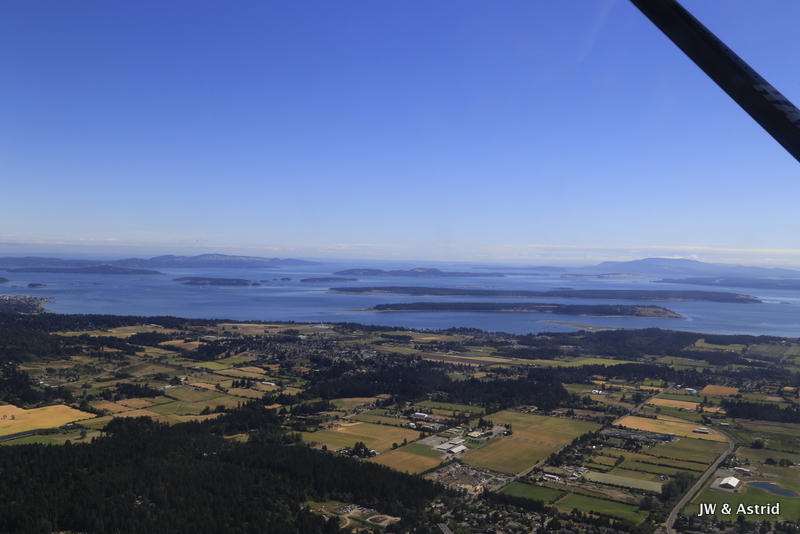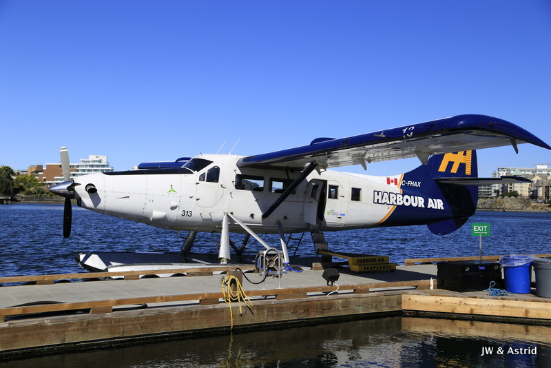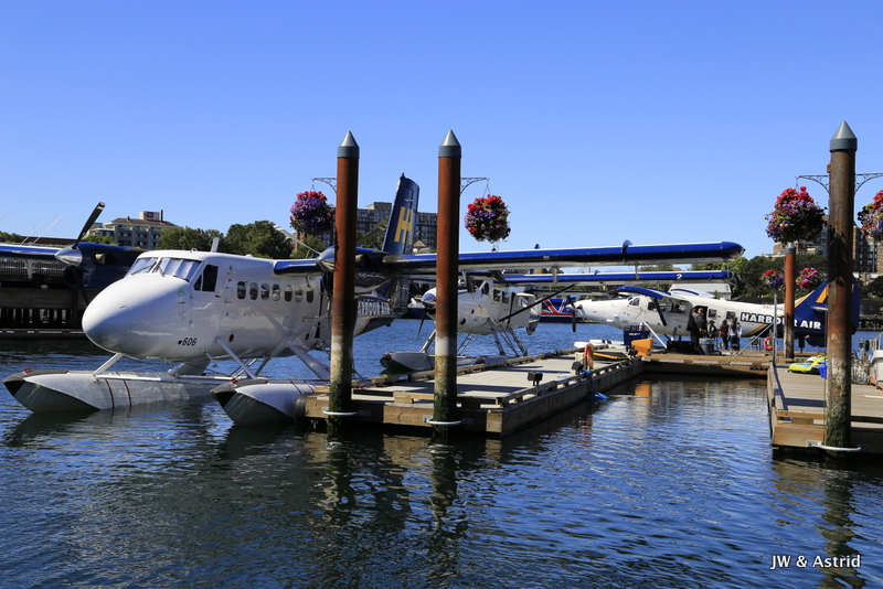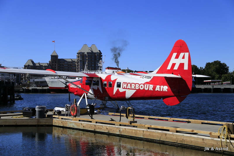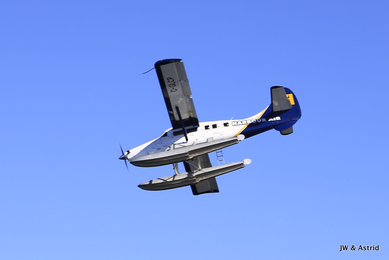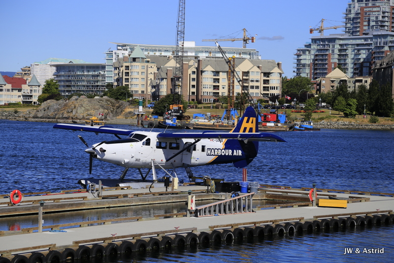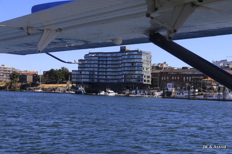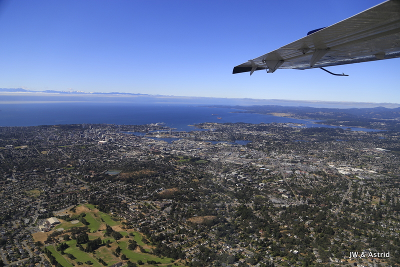 Het weer is helder, tegen de weersverwachtingen in, dus we hebben geluk. Onze rondvlucht met het watervliegtuig start om 10.30 uur en duurt ongeveer 30 a 40 minuten. Het vliegtuigje moet aan de Canadese kant blijven, de zee is namelijk gedeeltelijk Candees en Amerikaans. De vlucht volgt de Noordelijke kustlijn van Victoria langs de Light House, Saanich en draait bij Sidney, vervolgens vliegen we terug naar de haven. Zoals gezegd, het helder en hebben we geweldig mooi uitzicht op de Amerikaans Olympic bergen, de zee en Victoria. Voordat we het weten zet het vliegtuigje de landing weer in en landen we in het water van de haven van Victoria. Hier hebben we echt enorm van genoten, erg leuk weer een ervaring rijker.