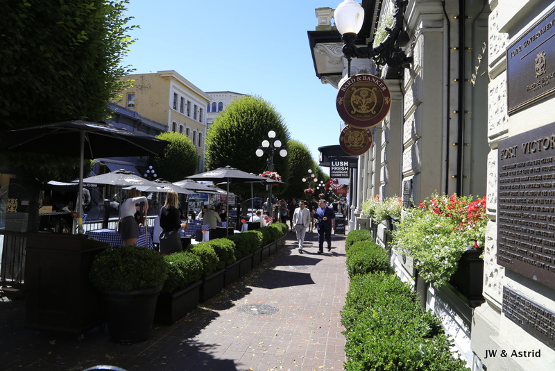We gaan terug naar het hotel en parkeren de auto in de garage. We wandelen vervolgens het mooie centrum van Victoria om onze beleving en ervaring van deze regio compleet te maken. China Town ziet iedereen als een nummer 1 attractie, maar wij vinden er eigenlijk erg weinig aan. We begrijpen dat ook niet zo goed want het centrum van Victoria is verder erg mooi en gezellig.