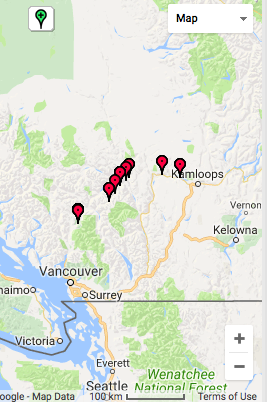 We stoppen nog even voor een laatste blik op Kamloops Lake en vervolgen onze weg. De route van Kamloops naar Whistler verloopt voor het eerste deel heel erg voorspoedig, we genieten van een geweldig mooi bergachtig landschap als we vanaf richting het westen rijden via HW 1. Vervolgens volgen we vanaf Cache Greek HW 97 en HW 99 die iets meer tijdrovend is maar ons door een geweldig mooi bergachtige landschap leidt. De rit is 380 km en 4 uur rijden als je nergens stopt, dat doen wij uiteraard niet. Het is ook heel bijzonder om overal in Canada te zien dat het vervoer van goederen voornamelijk door de treinen voor hun rekening wordt genomen. De treinen zijn allemaal mega lang en worden door meerdere locomotieven getrokken/geduwd.