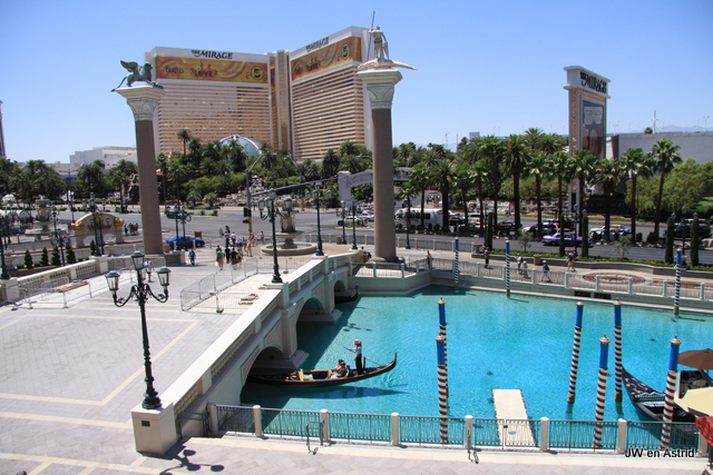 Het hotel heeft mooie zwembaden waar een DJ muziek draait en heeft zelfs ook een beach volleybal veld. We gaan lekker uitrusten bij het zwembad en om ons heen kijken, want het draait in Las Vegas wel om: ‘zien en gezien worden’….. Helaas worden we om 18.00 uur uit het zwembad ‘gefloten’ door de life guard omdat het zwembad gaat sluiten. Het zal ongetwijfeld een reden hebben, maar op zich best raar want het was nog behoorlijk warm.