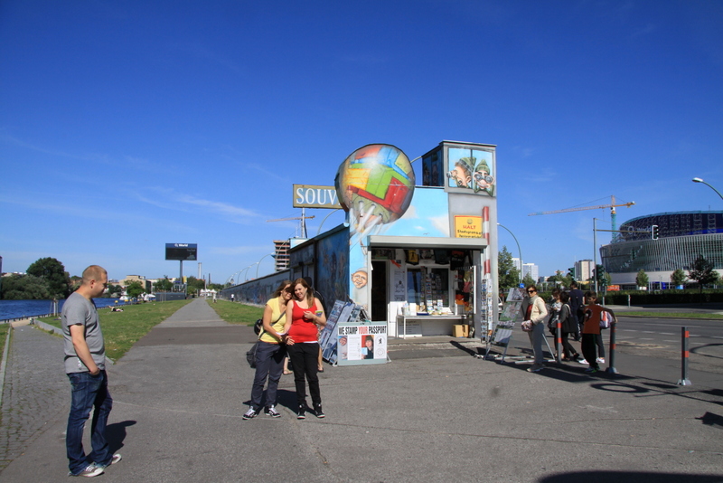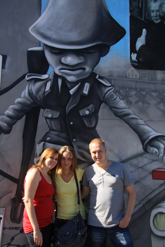 We nemen de metro naar de Mühlenstrasse waar de East Side Gallery zich bevindt. De East Side Gallery bestaat uit een stuk van 1316 meter van de Berlijnse Muur dat na de Wende vanaf december 1989 door 118 kunstenaars werd beschilderd. Het stuk ligt tussen Berlin Ostbahnhof en de Oberbaumbrücke parallel aan de river de Spree. De beschilderingen zijn meestal aangebracht met graffiti en gaan over politieke zaken na de Wende. Het begrip Wende ‘Omwenteling’ duidt de ontwikkeling aan in 1989 en 1990, waarin de DDR veranderde van een communistische dictatuur in een pralementaire democratie. De belangrijkste gebeurtenis was de Val van de Muur op 9 november in 1989. Achter de muur ligt een stadstrandje dat fraai uitzicht geeft op de Oberbaumbrücke. Het is mooi weer, op ons gemak bewonderen we de beschilderingen.