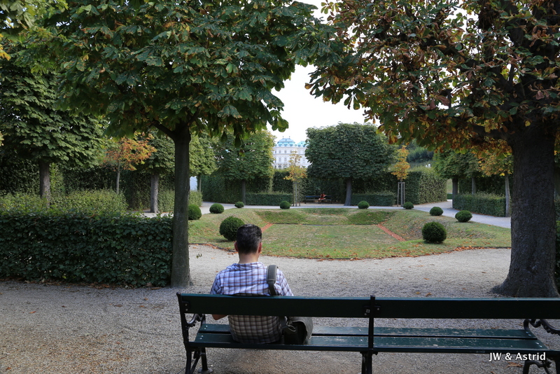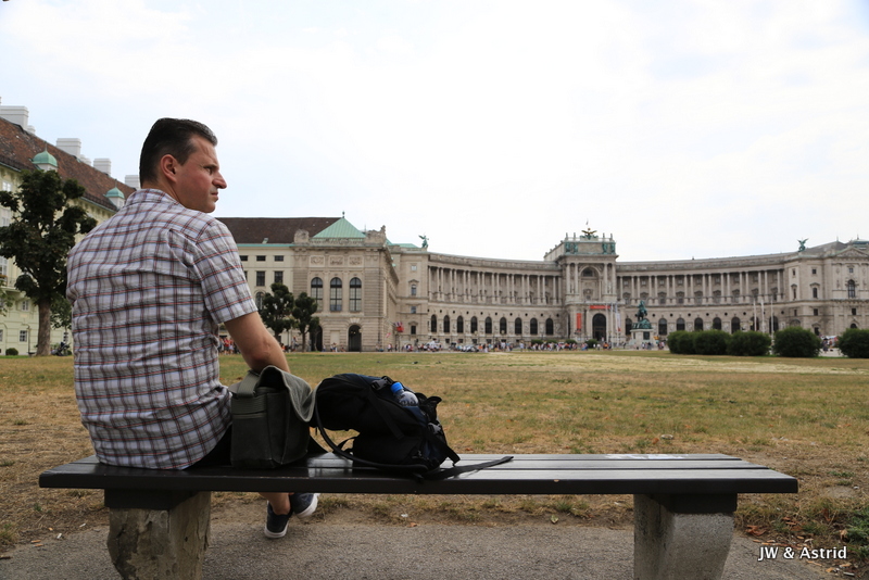 Via de overweldigende park lopen we weer een enorm weldadig fotogeniek gebouw tegemoet. We nemen een ‘zoetertje’ op het bijbehorende terras en bewonderen daarna de tijdelijke tentoonstelling met veel schilderijen van Klimt. Bij een namaak schilderij van The Kiss maken we nog even en selfie en gaan vervolgens echt bekaf terug naar het hotel.