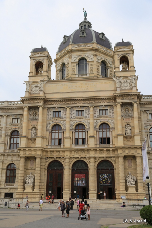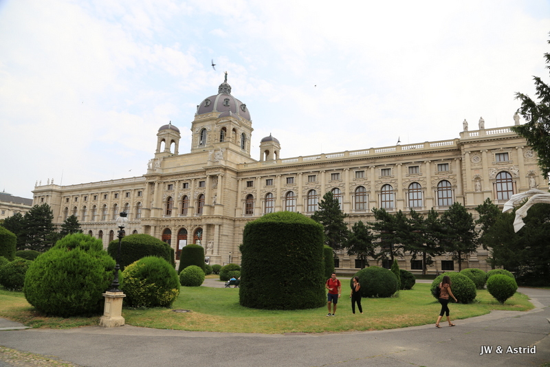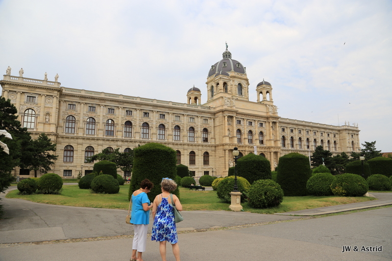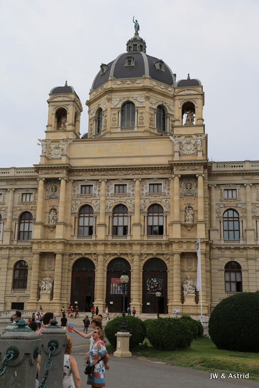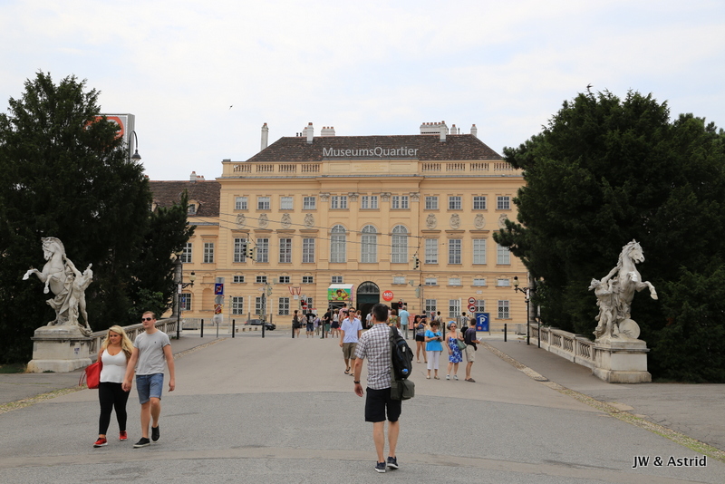 We wandelen onder door de poortjes van ‘Franciscus I Imperator’ richting het Museum Quartier, wederom geweldig mooie gebouwen uit de 18e eeuw waarvan met stelt dat het een mengeling is van de barok stijl en moderne architectuur. Uiteraard zijn ook hier veel toeristen. Ik krijg het bijna aan de stok met een man die mij via de rugzak een duw geeft terwijl ik een foto sta te maken, ik moest opzij gaan……. Aan de ene kant staat het Kunst Historische Museum Wien en pal daar tegenover aan de andere kant staat het Leopold Museum. Als je alle gebouwen en musea in Wenen zou willen bezoeken dan heb je echt meer dan een weekend nodig.