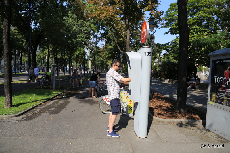 Na een drankje op een terras gaan we opnieuw op zoek naar een fietsen. Achter de Dom is dat mogelijk, maar helaas staat een groep van 6 jongeren zich te registreren wat echt wel behoorlijk wat tijd in beslag neemt. Tevergeefs doen we de volgende stalling aan, maar gelukkig zijn er ruim voldoende op-afhaalpunten en hebben we daarna meer geluk.