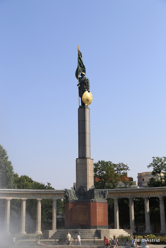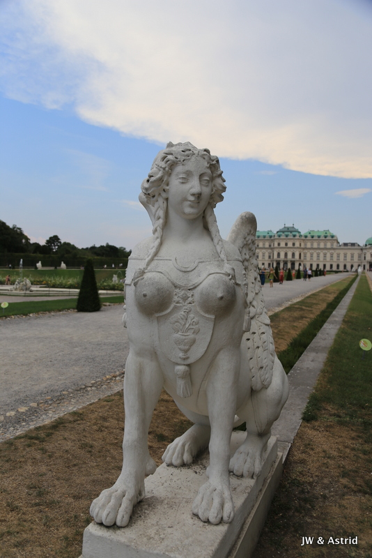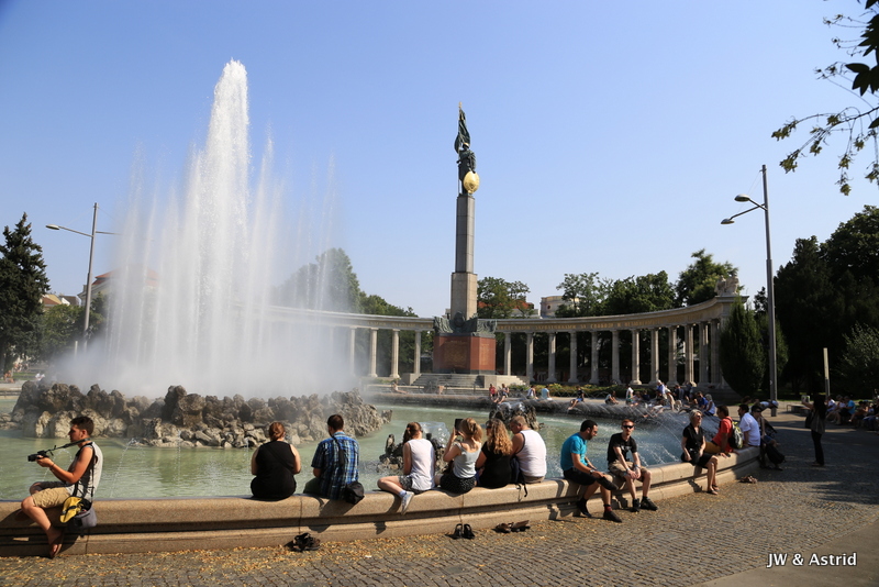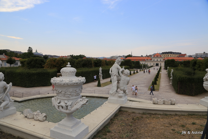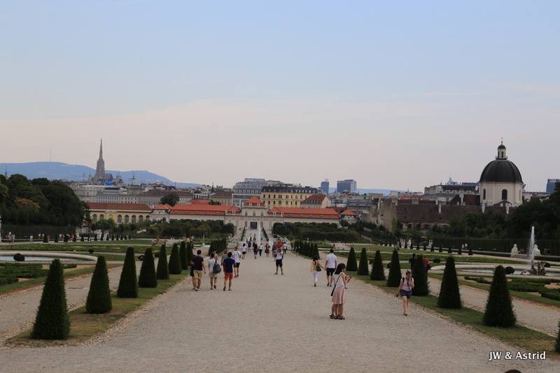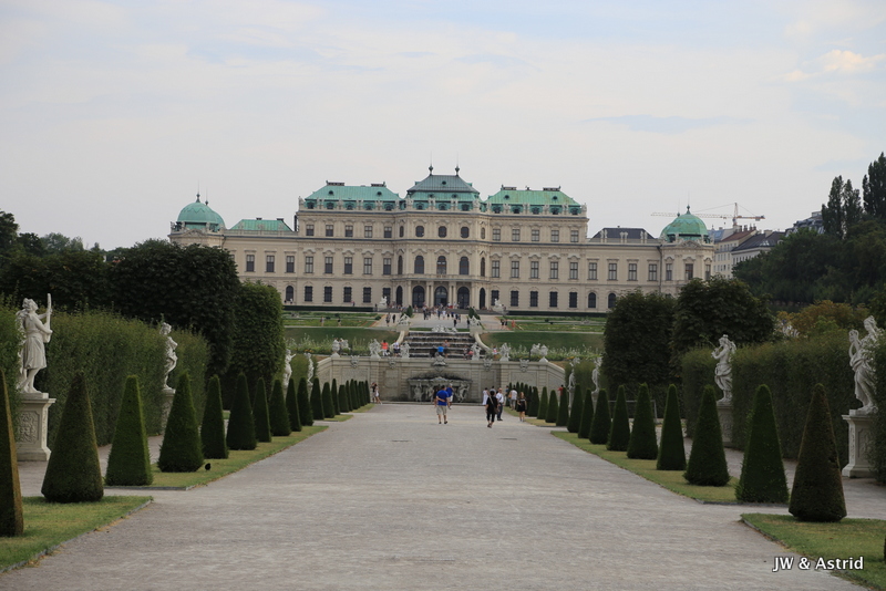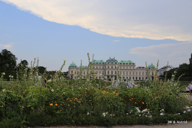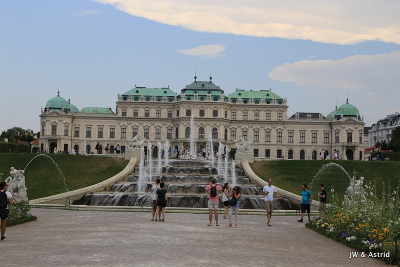 We fietsen via een Oorlogsmonument naar de Rennweg waar Belverdere (en ook ons hotel) zich bevindt. Het is een prachtig paleiscomplex met twee barokke paleizen. We willen graag het schilderij ‘The Kiss’ van Klimt bekijken die tentoon gesteld wordt in Belverdere upper. In Belverdere upper worden tijdelijke tentoonstelling gehouden en Belverdere lower heeft een vaste collectie Oostenrijkse kunst bekijken maar ook een internationale collectie voornamelijk uit de laatste twee eeuwen. Het werk van Klimt werd in zijn begintijd niet gewaardeerd door de gevestigde orde, die zijn schilderijen pronografisch vond. In deze tijd zouden veel mensen daar om lachen, als je naar het fraaie schilderij kijkt. Klimt kreeg later erkenning en werd benoemd tot eredocent van de universiteit van Munchen en Wenen. In zijn talrijke portretten weeft hij gestileerde kleurvlakken door elkaar als een soort patch-work en maakt hij gebruik van goud in zijn schilderijen.