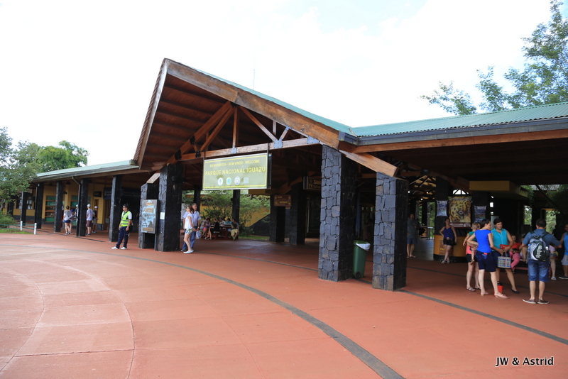 Geen probleem op zich, we ontbijten en gaan op weg naar de watervallen aan de Argentijnse kant. Het is opnieuw bewolkt maar wel droog. Vanuit ons hotel is het maar een klein stukje rijden en rond 9.00 uur wandelen we Parque Nacional Iguazu in met ons toegangsbewijs.